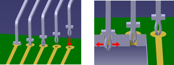専用のスルーホールに圧入することで、端子のばね応力により安定した電気接触を確保します。