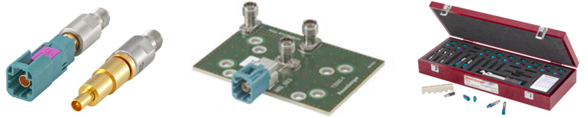 ローゼンバーガーはこれに対応し、FAKRA、HFM®、RosenbergerHSD®、H-MTD®、MTD®といった同軸および差動の車載コネクタシリーズ用のテスト機器・アクセサリを提供しております。